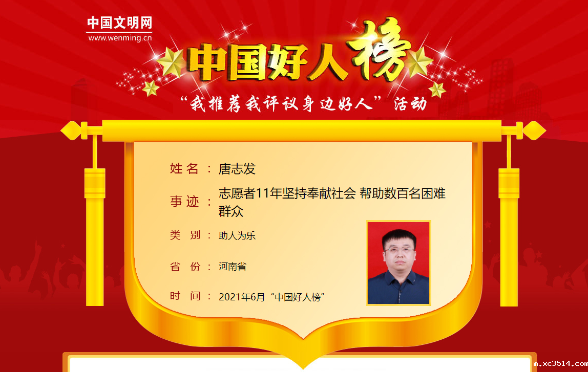 优秀校友|唐志发:从我校走出来的“中国好人”